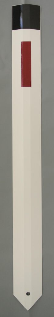 Die flexible Lösung zum Einschlagen: RandmarkFlex 90S (RF90S) oder RandmarkFlex 120S (RF120S): für 50cm oder 80cm Höhe über Flur; Länge 90cm oder 120cm; Breite ca. 11cm; Material: mit feuerverzinktem Erdspieß, 2 Reflektoraufklebern und schwarzem Abschluss (Folie); aus Vollkunststoff (PVC-U); empfohlene Einschlagtiefe: 40cm (Länge des Erdspießes).