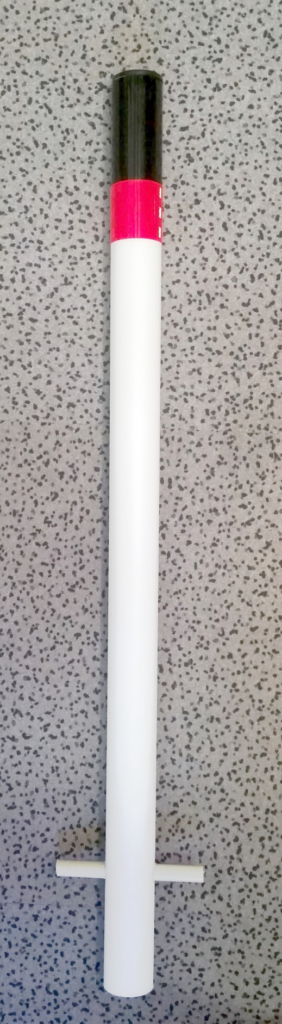 Die starre Lösung zum Eingraben: RandmarkRound 90 (RR90): runder Feuerwehrleitpfosten aus robustem, starren Kunststoff, zum Eingraben (Empfehlung 40cm tief) mit Querstift aus Kunststoff zur Verankerung im Boden. Form: Rund; Gesamtlänge 90cm, Durchmesser 5cm, Stärke 3cm, Höhe über Flur 50cm, Gewicht ca. 0,6kg; Material PE ohne Weichmacher; Farbe: Weiß durchfärbt mit schwarzem Abschluss (Folie) und roter Reflektorfolie umlaufend.